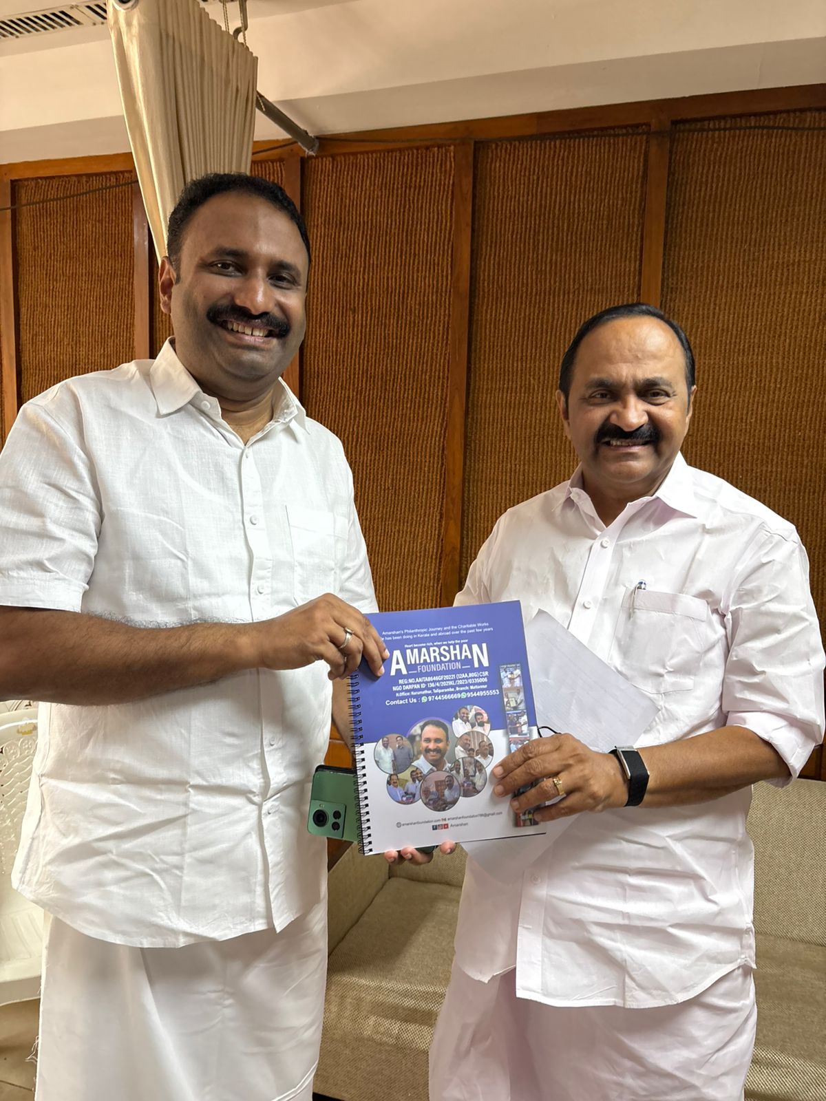 കണ്ണൂർ DIG യതീഷ് ചന്ദ്ര സാറിനെ ഇന്ന് ഓഫീസിൽ എത്തി കണ്ട് സംസാരിച്ചു..!! കൂടിക്കാഴ്ചയിൽ, നാട്ടിൽ നടക്കുന്ന വിവിധ ചാരിറ്റി പ്രവർത്തനങ്ങൾക്കും അവയ്ക്ക് നേരിടുന്ന വെല്ലുവിളികൾക്കും സംബന്ധിച്ച വിഷയങ്ങൾ വിശദമായി ചര്ച്ചയായി. അമർഷാൻ നാട്ടിലെ അർഹതപ്പെട്ട കുടുംബങ്ങളിലേക്കുള്ള മെഡിക്കൽ സഹായങ്ങൾ, ഡയാലിസിസ് സേവനങ്ങൾ, ഫിസിയോതെറാപ്പി പിന്തുണ തുടങ്ങിയ സാമൂഹ്യ സേവന പ്രവർത്തനങ്ങൾ സംബന്ധിച്ച പ്രയാസങ്ങൾ പങ്കുവെച്ചു. ഡിഐജി യതീഷ് ചന്ദ്ര സാർ അതെല്ലാം ശ്രദ്ധാപൂർവ്വം കേട്ട്, പ്രായോഗിക പരിഹാരങ്ങളും വ്യക്തമായ മാർഗ്ഗനിർദ്ദേശങ്ങളും നൽകി മുന്നോട്ട് പോകാനുള്ള മാർഗങ്ങൾ സൂചിപ്പിച്ചു. സമൂഹത്തിന്റെ ആവശ്യമനുസരിച്ച് പ്രവർത്തിക്കുന്ന ഫൗണ്ടേഷന്റെ ആത്മാർത്ഥമായ പരിശ്രമങ്ങൾ അദ്ദേഹം പ്രശംസിക്കുകയും ചെയ്തു. ഫൗണ്ടേഷൻ ഇതുവരെ പൂർത്തിയാക്കിയതും നടന്നു കൊണ്ടിരിക്കുന്നതുമായ സാമൂഹ്യ സേവന പദ്ധതികളുടെ വിശദമായ പ്രൊഫൈൽ അദ്ദേഹത്തിന് ഈ സന്ദർശനത്തിൽ കൈമാറി. “ചാരിറ്റി എന്നത് ഈ നാട്ടിൽ എന്നും നിലനിൽക്കണം. അർഹതപ്പെട്ട കുടുംബങ്ങളിലെ പാവപ്പെട്ട രോഗികൾക്ക് വേണ്ടിയുള്ള സേവനമാണ് നമ്മുടെ ലക്ഷ്യം. സഹകരണം, കരുണ, മനുഷ്യത്വം — ഇതാണ് നമ്മുടെ പ്രവർത്തനത്തിന്റെ അടിസ്ഥാനം.”